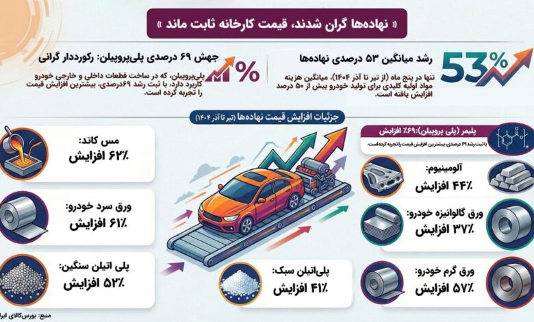 بر اساس گزارش رسمی معاملات بورس کالا، از تیرماه تا آذرماه ۱۴۰۴، مواد اولیه اصلی خودرو جهشهایی را تجربه کردهاند.