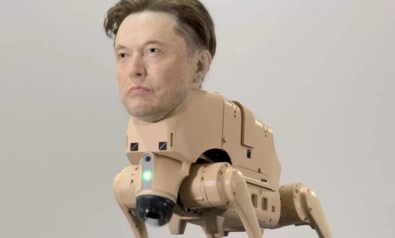 نمایش هنری عجیب: سگهای رباتیک با سر ایلان ماسک و مارک زاکربرگ! /عکس